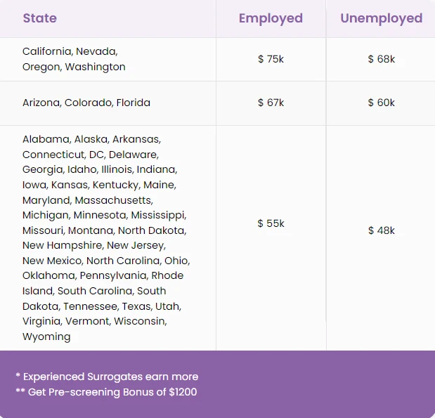 First-time Surrogates can earn up to $75,000+bonuses, which is one of the highest in the industry. Experienced Surrogates earn even more.